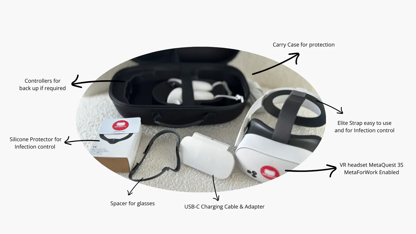- No personal accounts or third-party apps, ensuring devices are used only for PatientVR